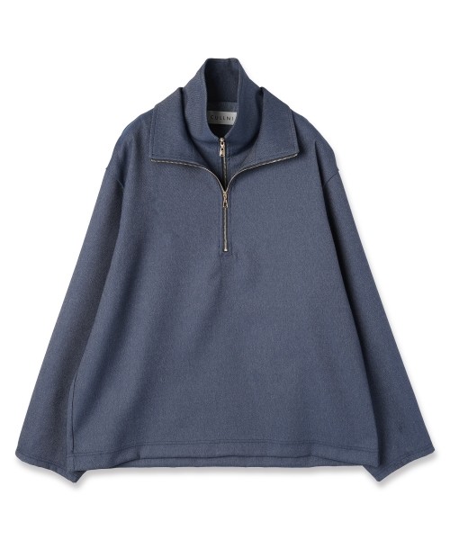 Stretch Double Cloth Layered Stand Collar Pullover