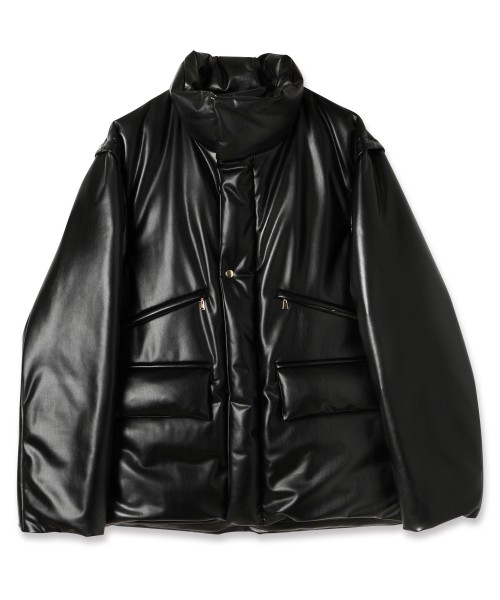 Faux Leather Removable Sleeve Down Jacket